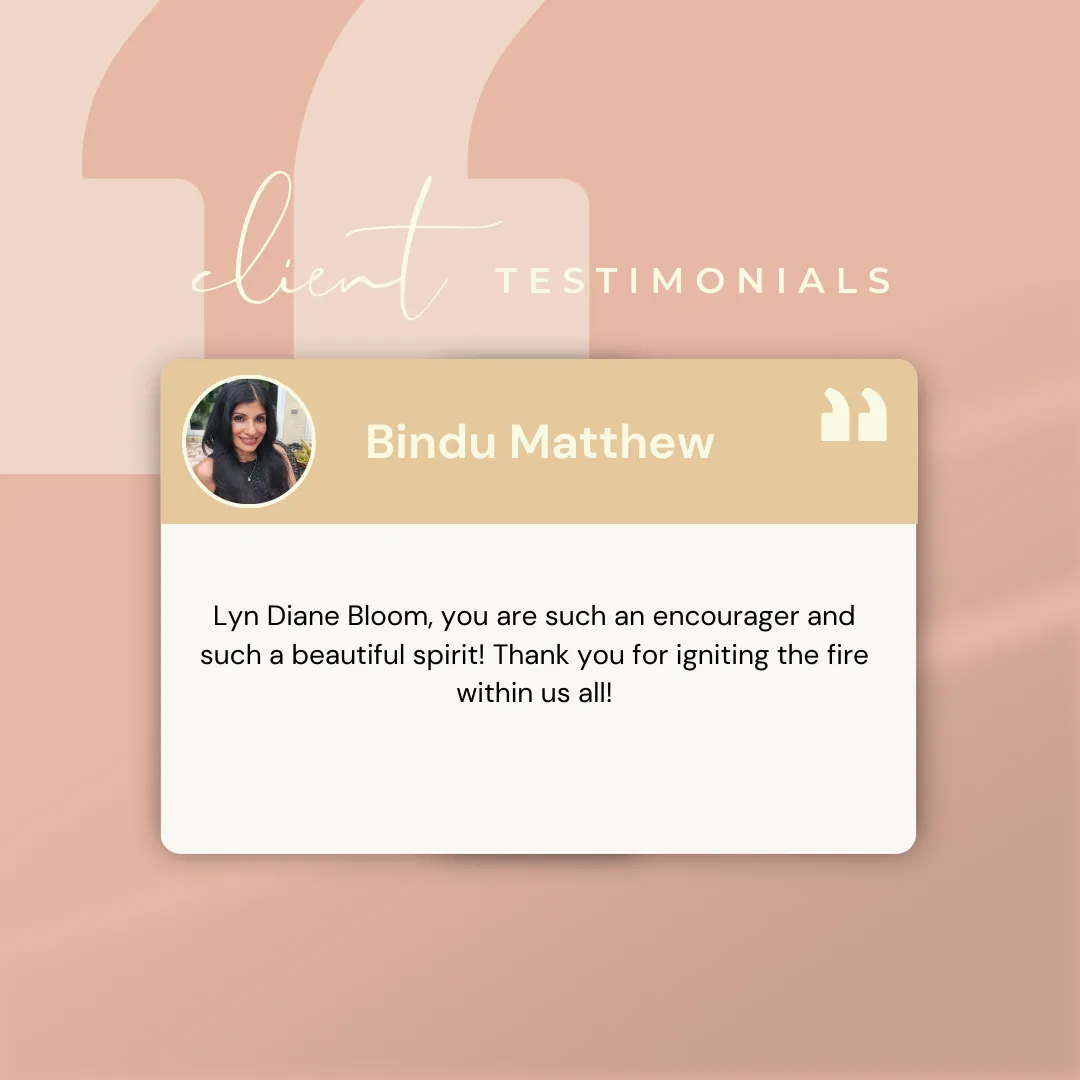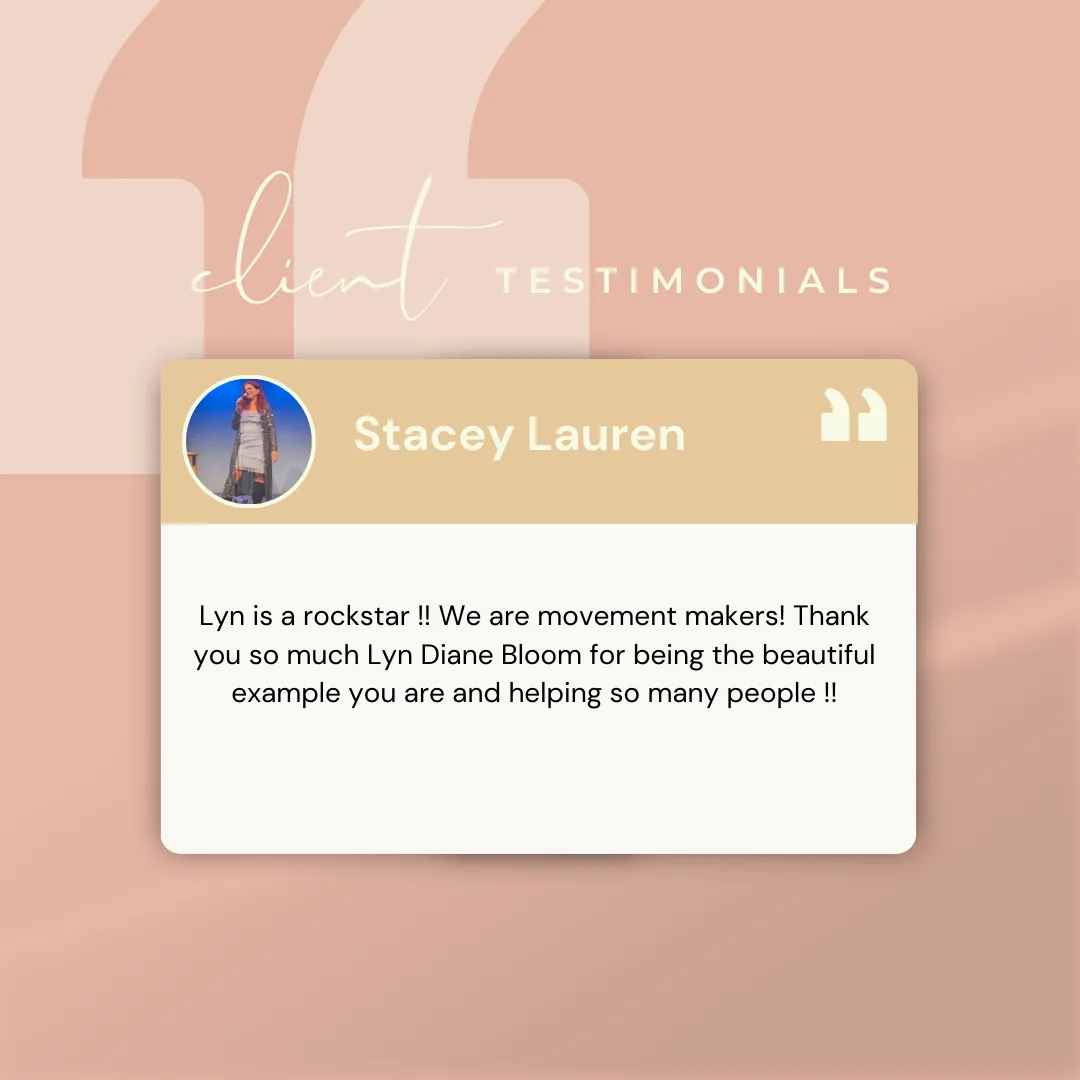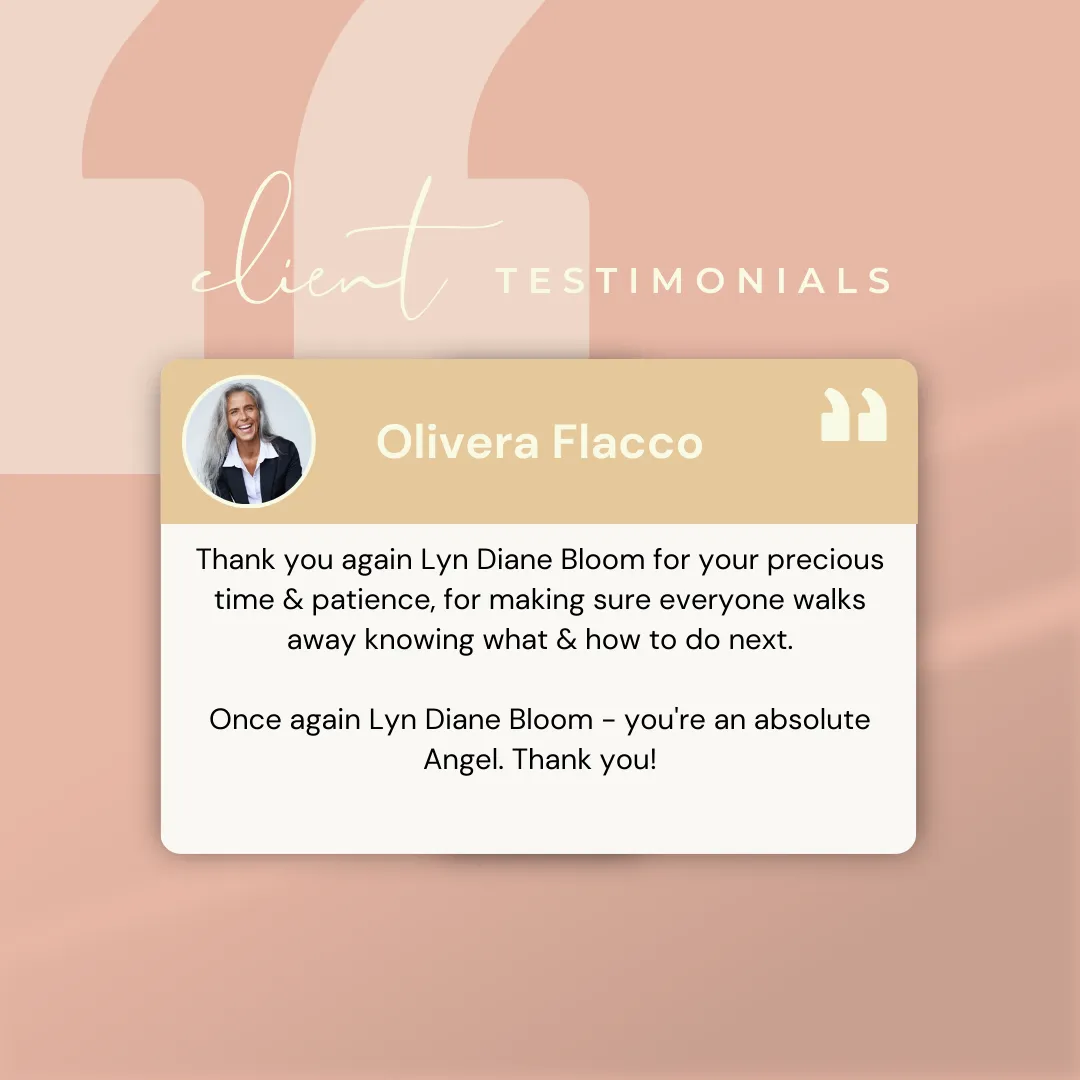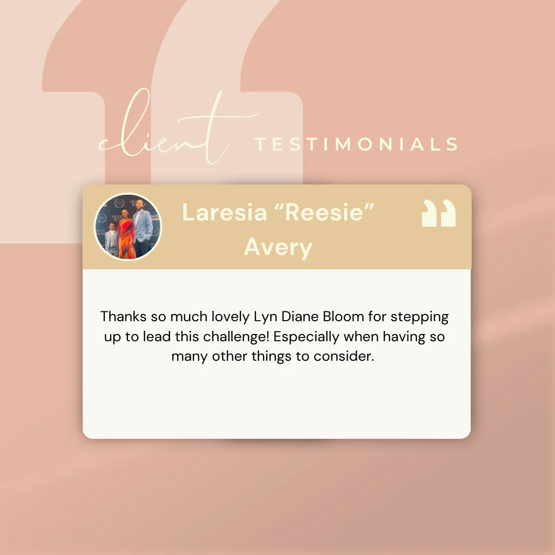 We make no claims or representation that by using our products or services, you will earn money, make your money back. Testimonials shown are real experiences from paying users of Lyn Bloom Coaching, products, or services. Their results are not typical, and your experience will vary based upon the effort and education of you, your significant others, your business’s employees and management, the model that is implemented, and market forces beyond anyone’s control.